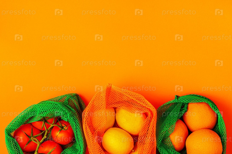 Свежие фрукты и овощи в многоразовых тканевых сетчатых мешках