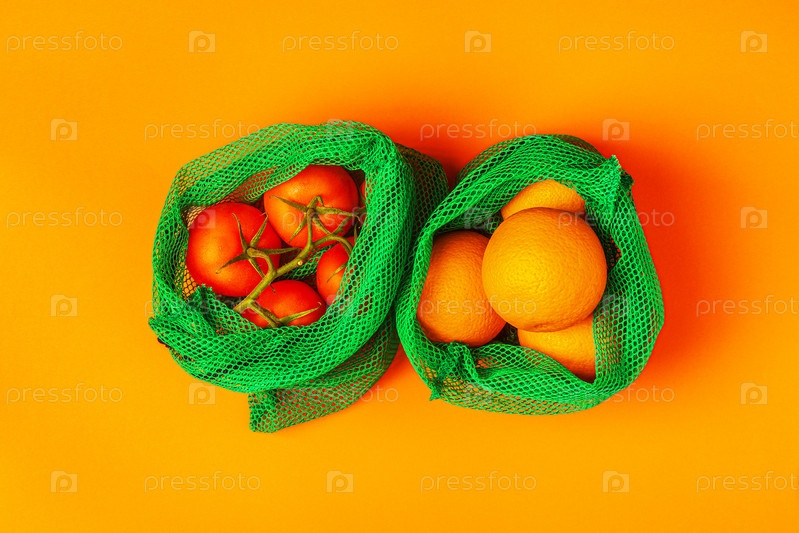 Свежие фрукты и овощи в многоразовых тканевых сетчатых мешках