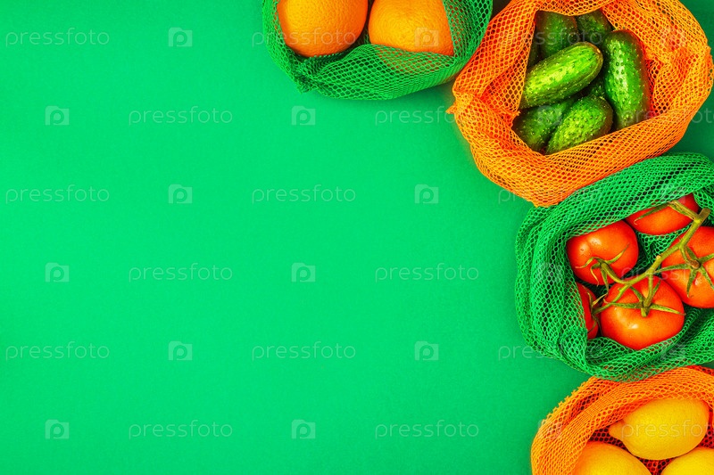 Свежие фрукты и овощи в многоразовых тканевых сетчатых мешках