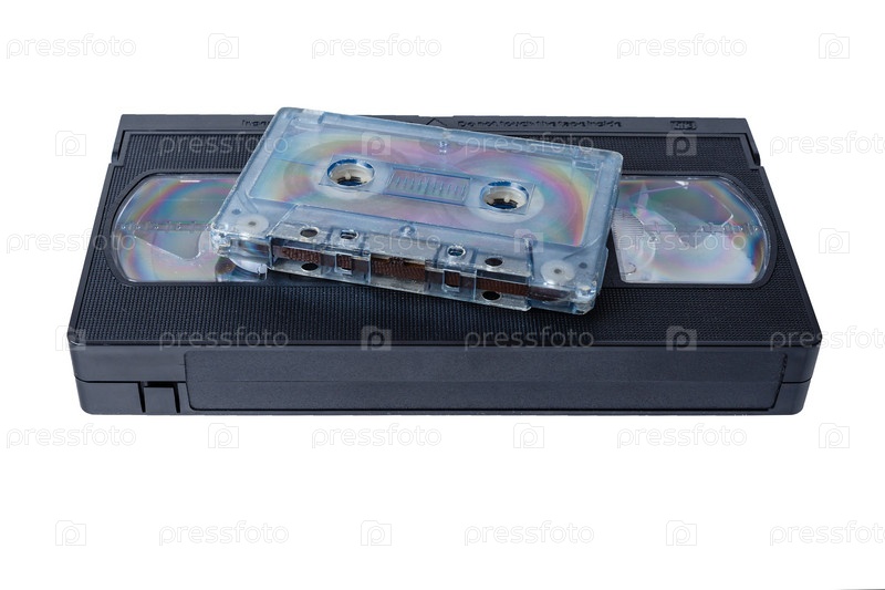Аудио- и видеокассеты VHS на белом фоне, изолированные
