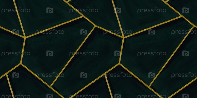 Абстрактные геометрические обои. Бесшовный витраж. Темный фон, золотые линии, плитка, мраморная текстура. Роскошный дизайн для продуктов, обоев, тканей, веб-сайтов