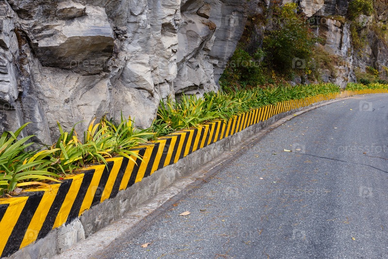 Желтые и черные полосы безопасности на национальной трассе g 210 в Китае