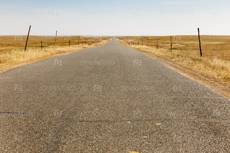 Асфальтированная дорога в степи с ветрогенераторами на горизонте, Внутренняя Монголия, Китай