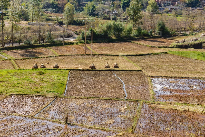 Пустые рисовые поля после сбора урожая, провинция Юньнань, Китай