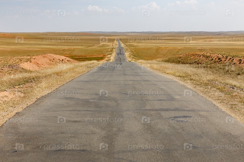 Асфальтированная дорога в степном красивом ландшафте, Внутренняя Монголия, Китай
