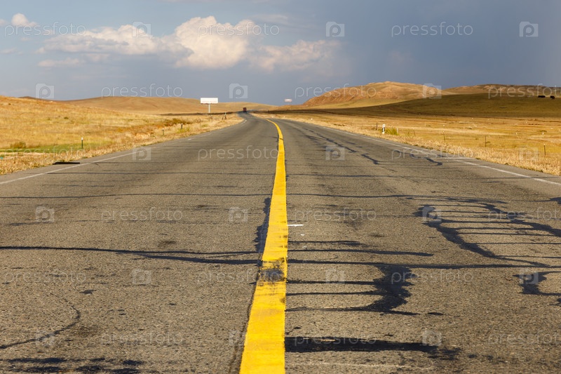 Желтая сплошная полоса на асфальтированной дороге, красивый пейзаж, Внутренняя Монголия, Китай