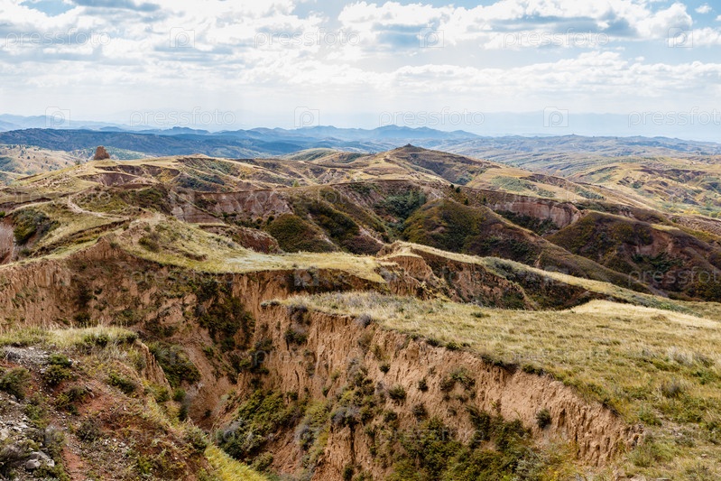 Песчано-гравийные холмы и овраги в горных районах Китая. провинция Хэбэй