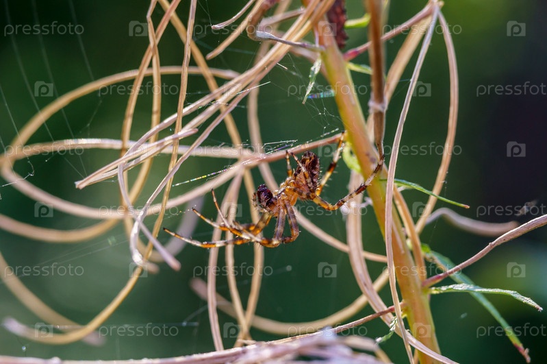Паук в траве. Паук-насекомое в природе. Паук на сухой траве