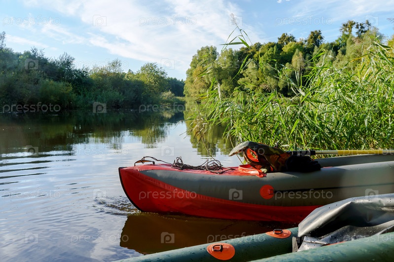 Каякинг на берегу реки. Каноэ. Активный отдых на воде