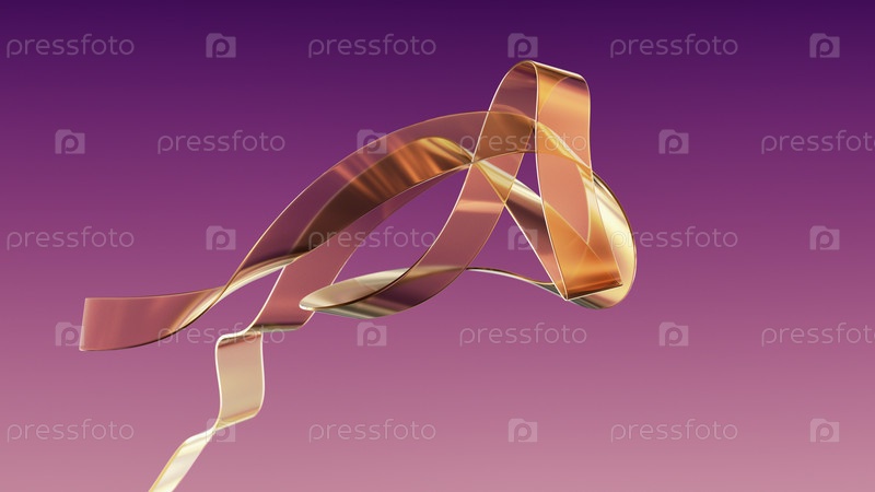 Прозрачная глянцевая лента парит в воздухе. Золотой цвет. Фиолетовый градиент фона. Элемент дизайна для баннера или обоев. 3D-визуализация