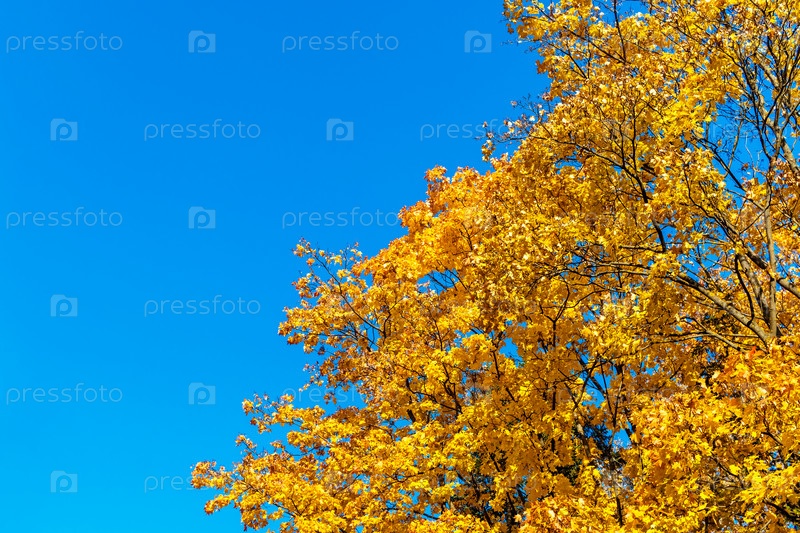 Кленовые ветки с желтыми листьями на фоне голубого неба