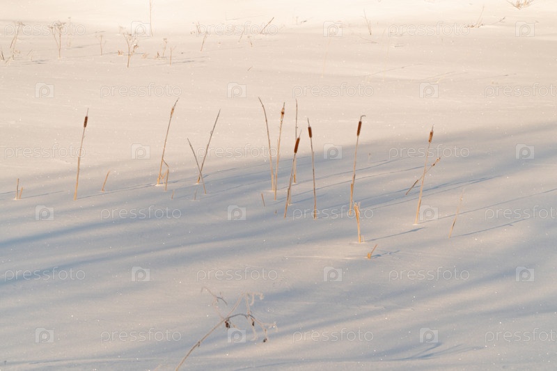 Зимний пейзаж со снегом и деревьями в солнечный день. Природный ландшафт зимой. Заснеженное поле