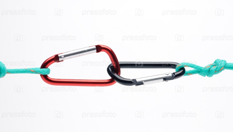 Сцепленные карабины на белом фоне