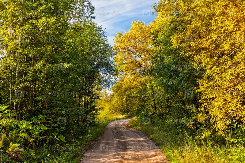 Сельский пейзаж с тропинкой в осеннем лесу