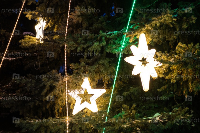 Большие новогодние гирлянды на елки. Фото высокого качества