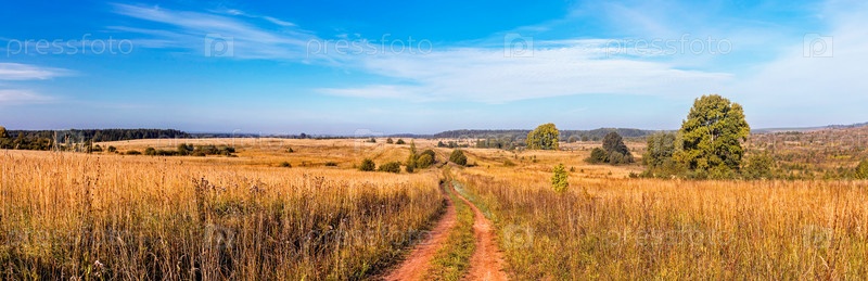 Пейзаж с грунтовой дорогой в поле в осенний день
