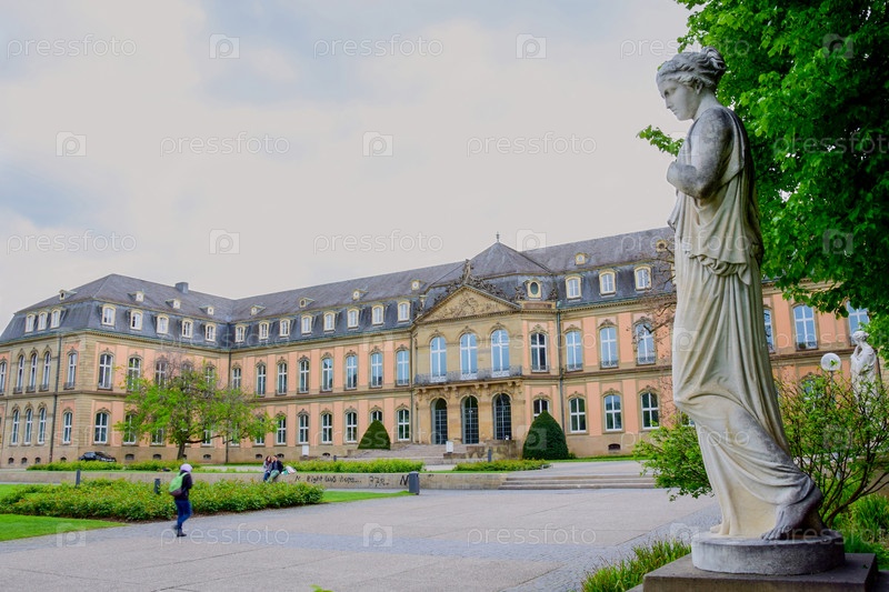 Статуя женщины на фоне фасада старого здания