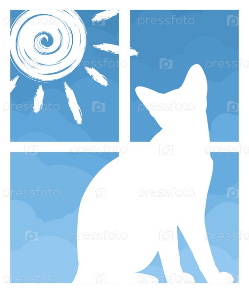 Окно с солнечным небом и домашней кошкой