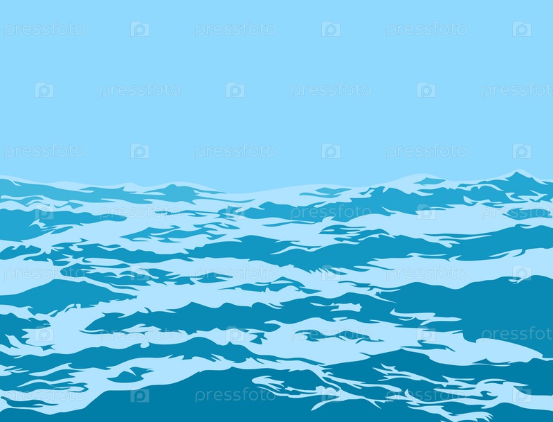 Морской пейзаж с большими голубыми волнами