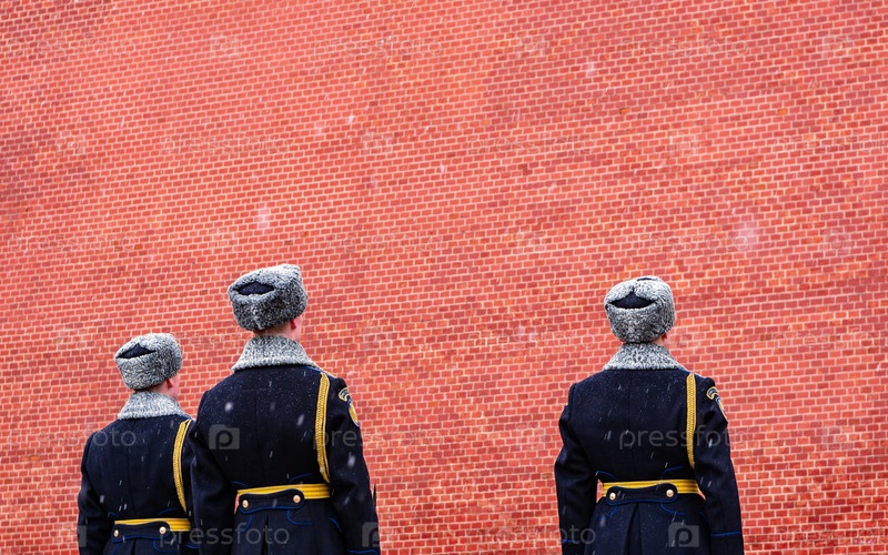 Кремлевская стража на красной стене Кремля