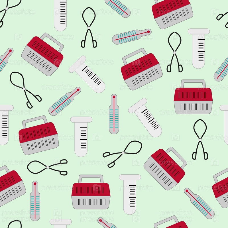 Термометр и колба, рисунок. Бесшовный фон. Текстура для дизайна. Иллюстрация