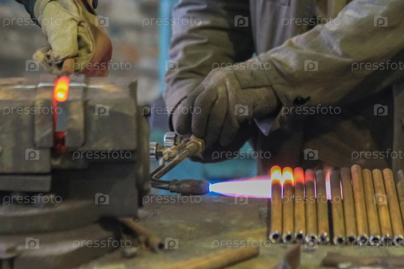 Газорезаком трубы нагревают на металле и зажимают в тисках