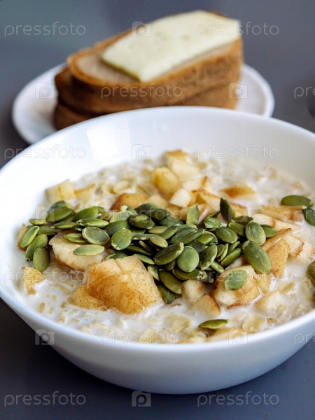 Овсянка с фруктами и тыквенными семечками