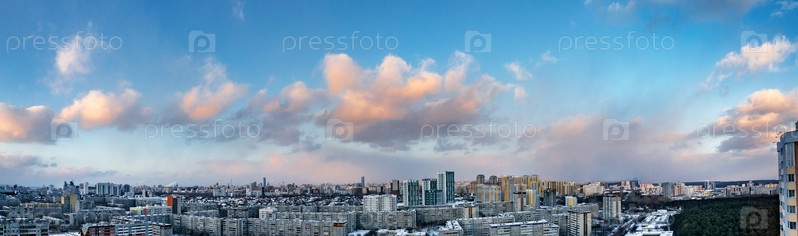 Рассветные облака над мегаполисом раннего зимнего заката в Екатеринбурге
