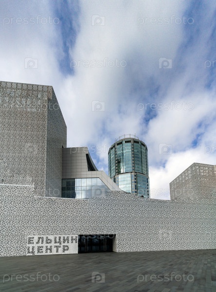 Главный вход Ельцин Центра в небесном облаке