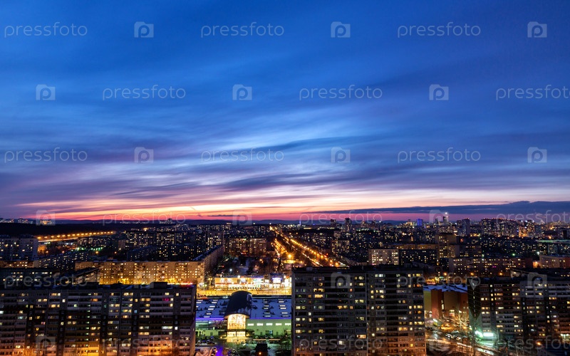 Рассветные облака над мегаполисом раннего зимнего заката в Екатеринбурге