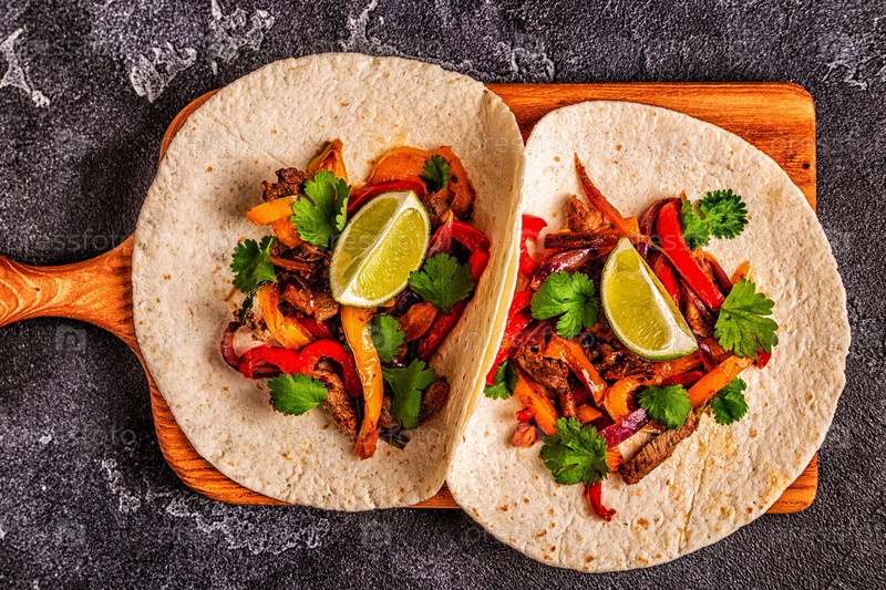 Фахитас с цветным перцем и луком, подается с лепешками
