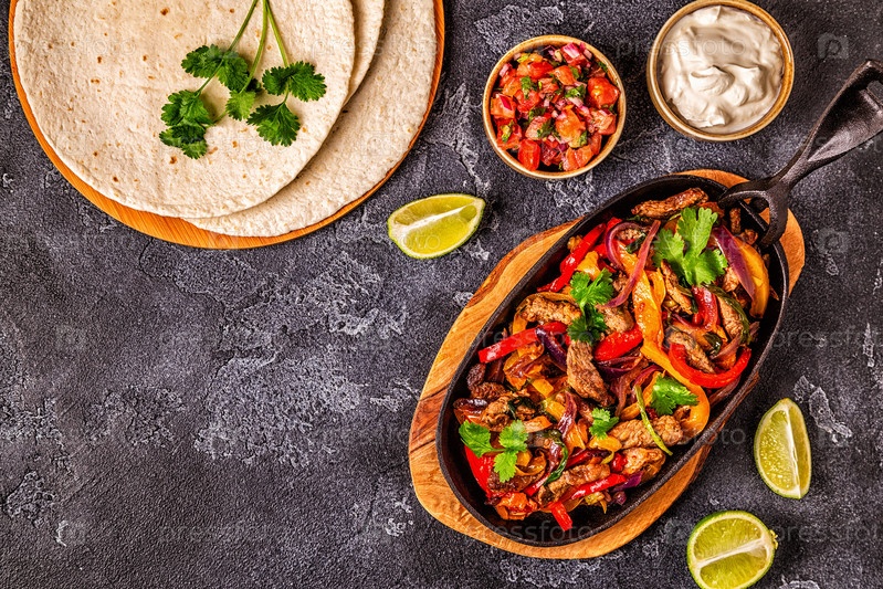 Фахитас с цветным перцем и луком, подается с лепешками