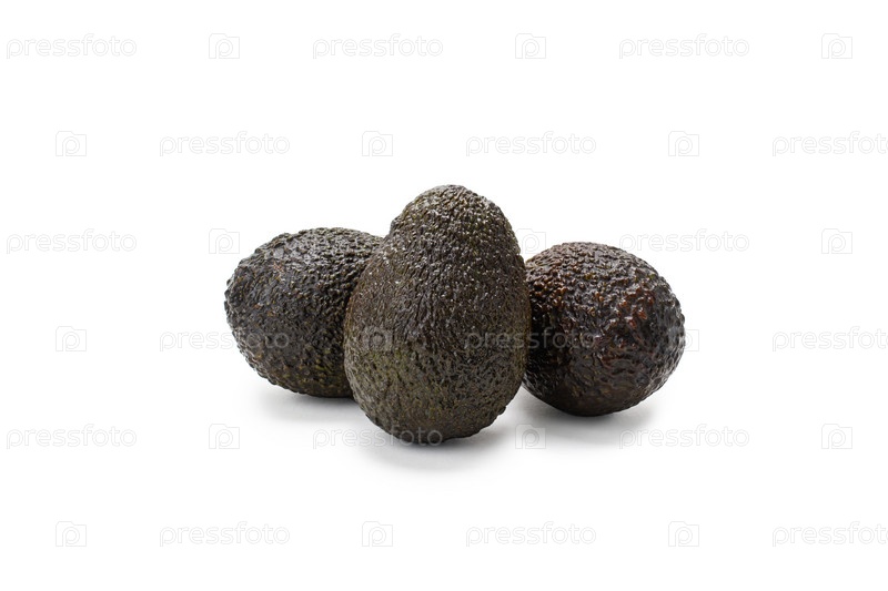 Темные авокадо на белом фоне