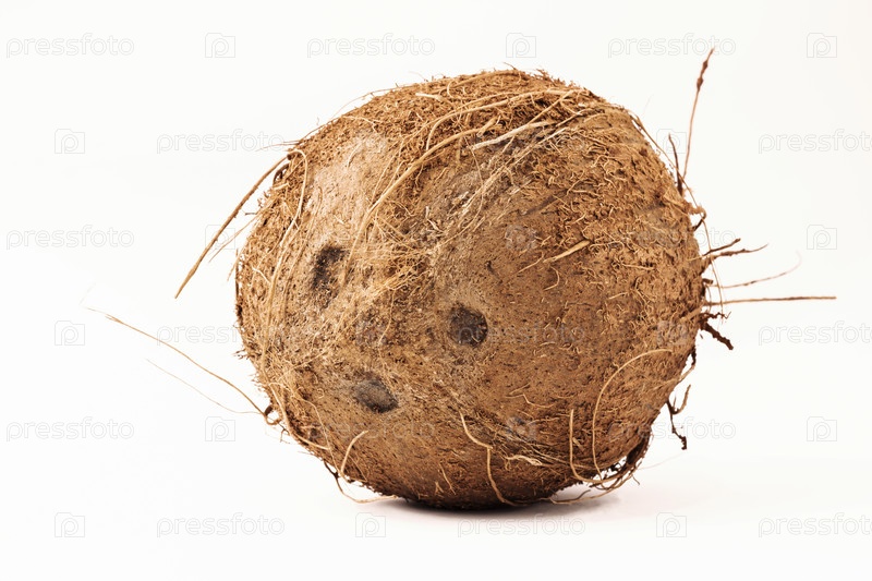Целый натуральный кокос на белом фоне