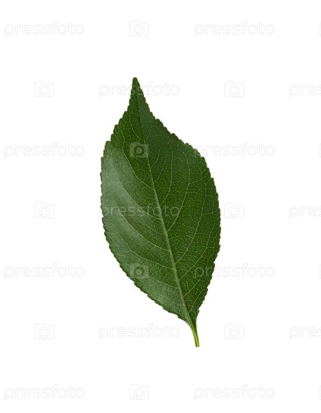 Вишневый лист изолирован. Зеленый лист на белом фоне. Вид сверху