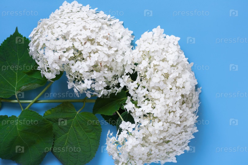 Ветви гортензии крупным планом на синем фоне, открытка