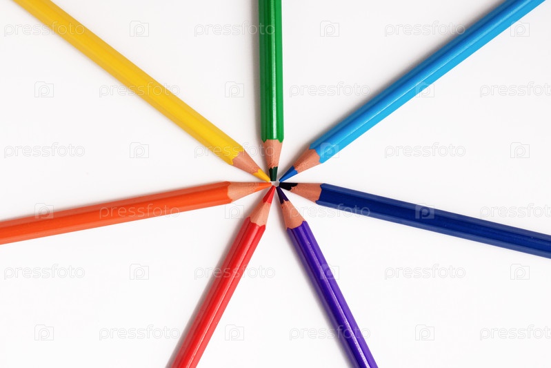 Цветные карандаши крупным планом на белом фоне цвета радуги