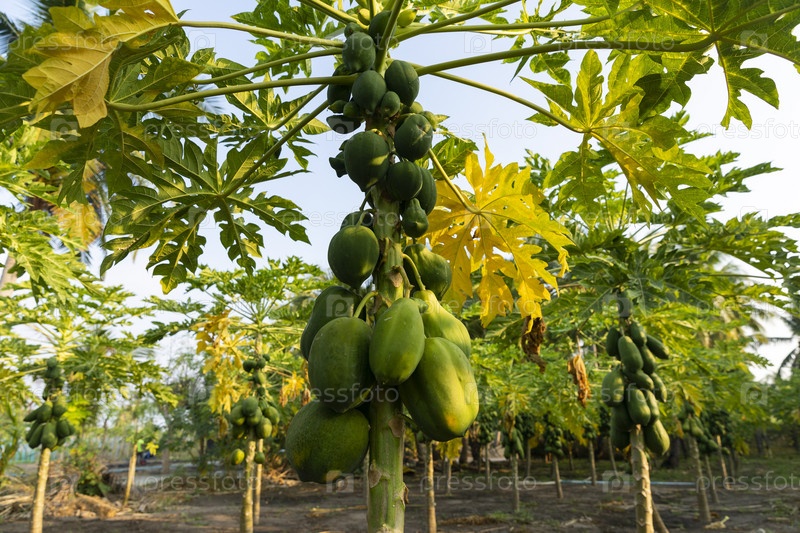 Мальдивская Республика. Остров Тодду. Плоды папайи на дереве. The Republic of Maldives. Остров Тода. Фрукты папайи на дереве
