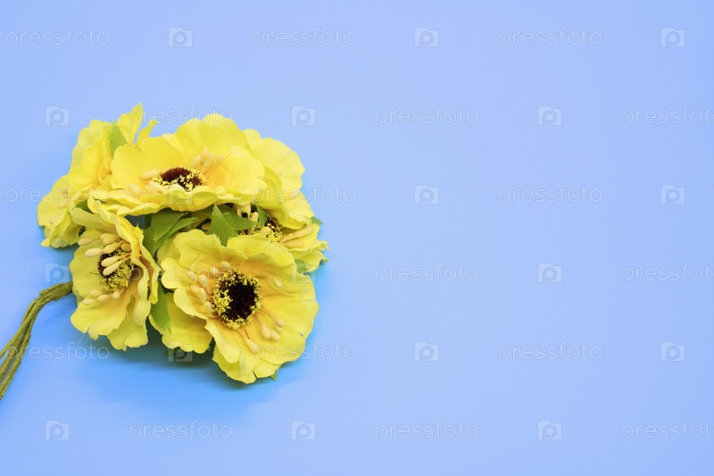 Букет желтых цветов, изолированные на синем фоне. Фон с копией пространства