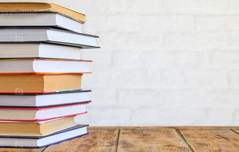 Стопка книг на старом деревянном столе на светлом фоне. Копирование пространства, выборочный фокус