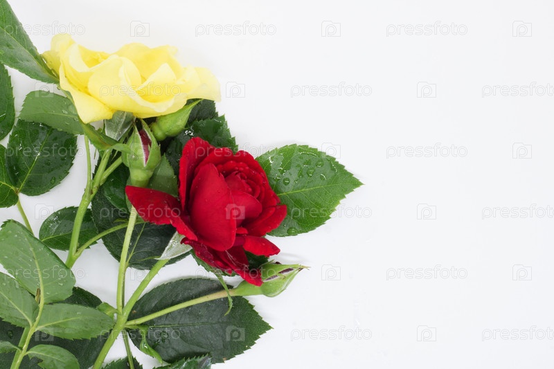 Крупным планом розы лежат на белом фоне стола, праздничная открытка, красивые цветы, место для текста