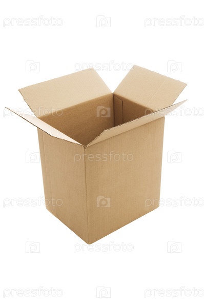 Пустая картонная коробка на белом фоне