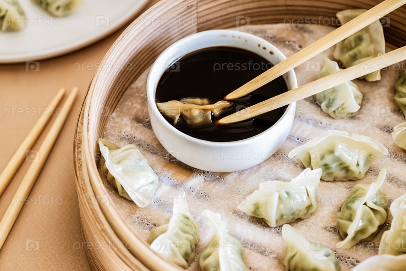 Азиатская гедза, закуска из пельменей, палочки для еды, пароварка
