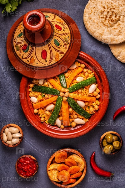 Овощной тажин с миндалем и кускусом из нута