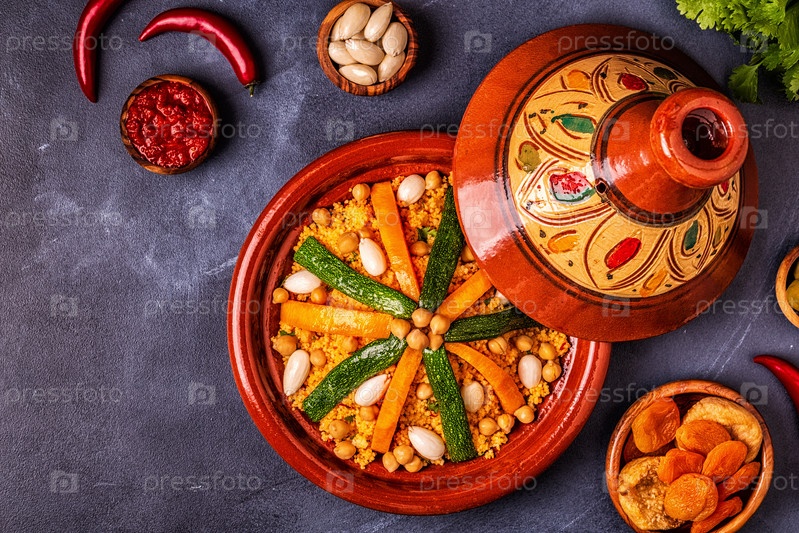 Овощной тажин с миндалем и кускусом из нута