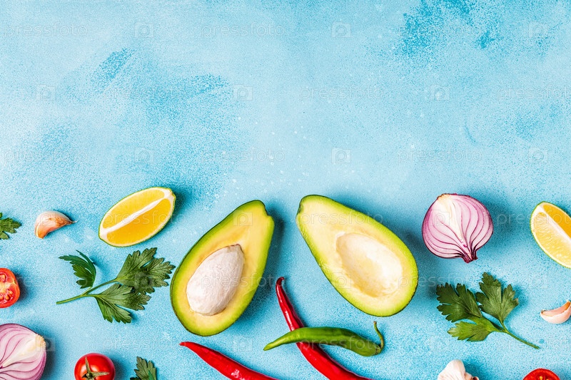 Ингредиенты для гуакамоле: авокадо, лайм, помидор, лук и специи