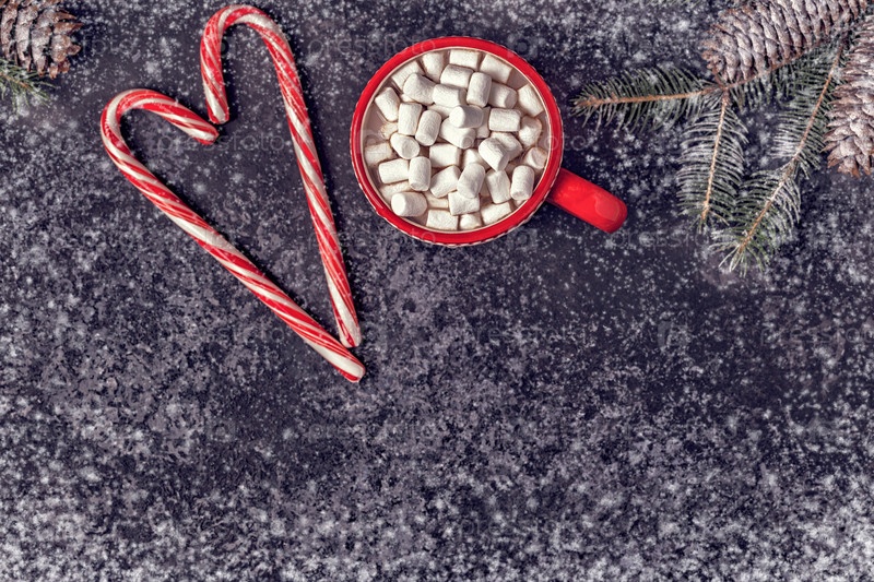 Рождественский фон с горячим какао и зефиром