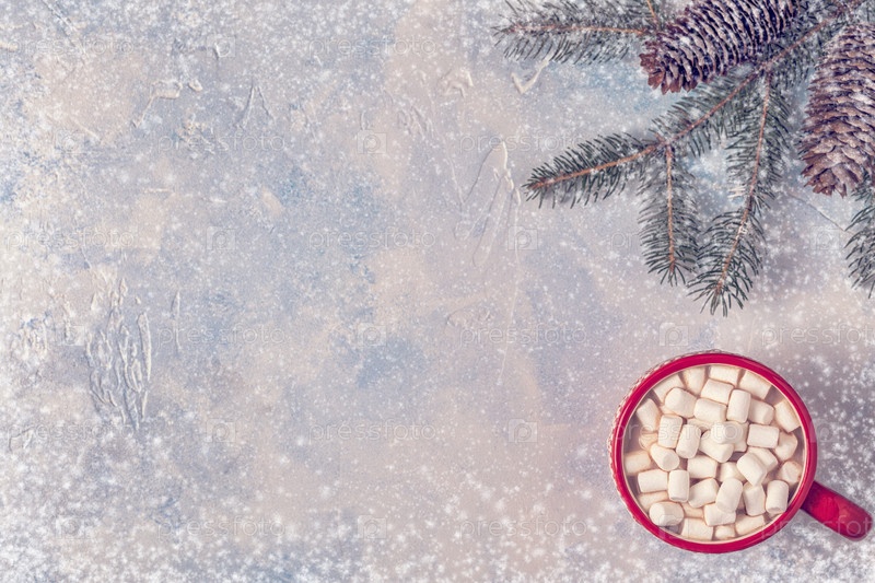 Рождественский фон с горячим какао и зефиром