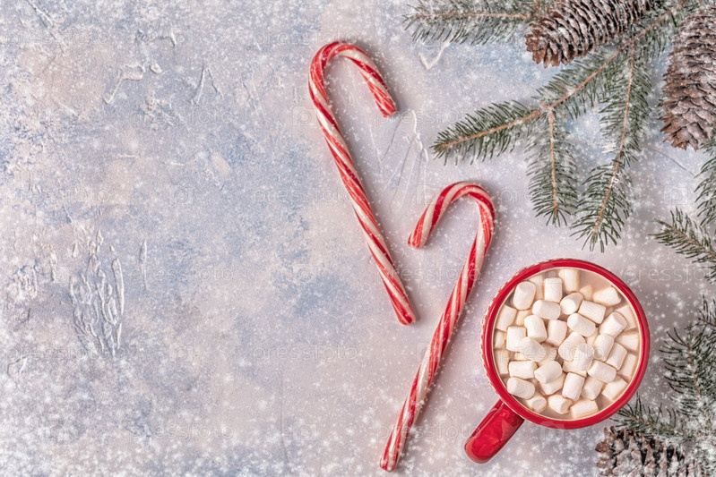 Рождественский фон с горячим какао и зефиром