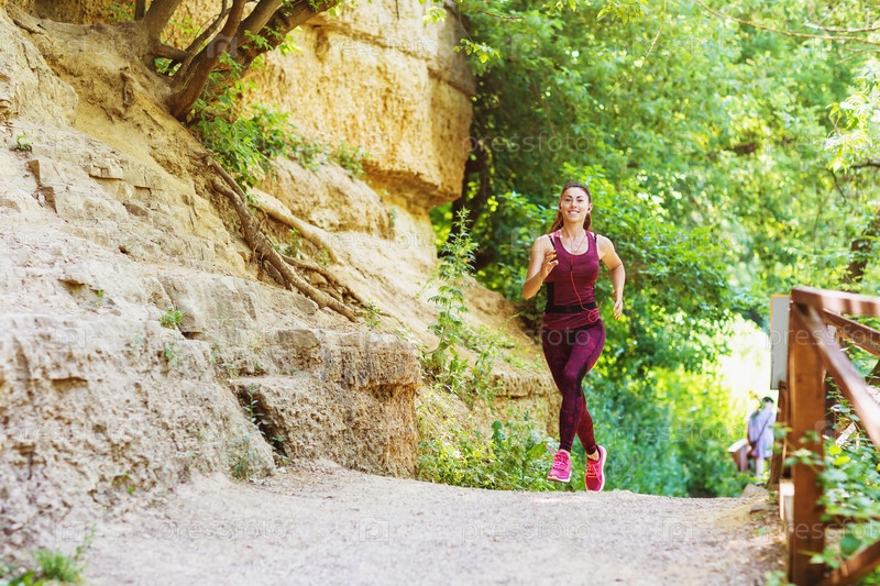 Красивая спортивная девушка занимается утренней пробежкой на свежем воздухе. Концепция здорового образа жизни